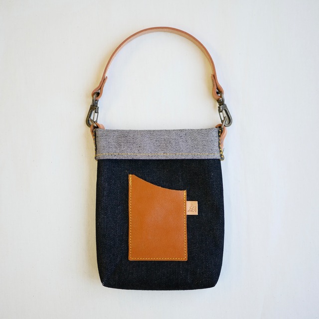 Bunko/尾州デニムと革の文庫ポーチ