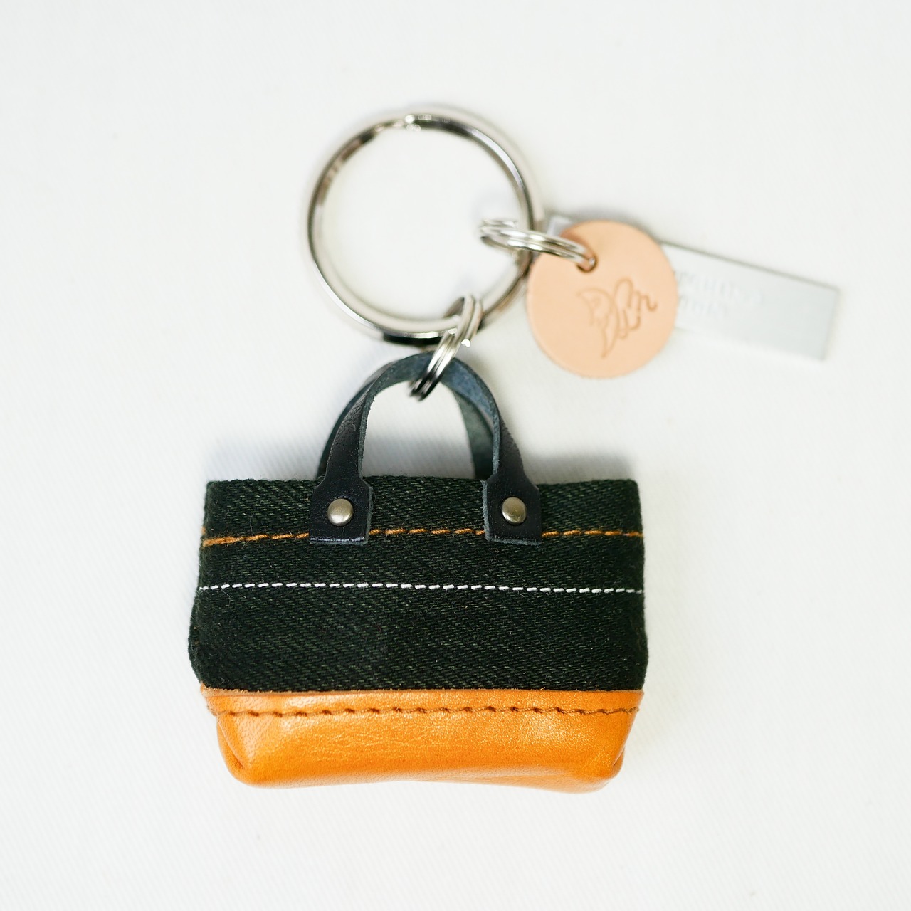 持ち手と底に本革を使用したミニバッグです。
