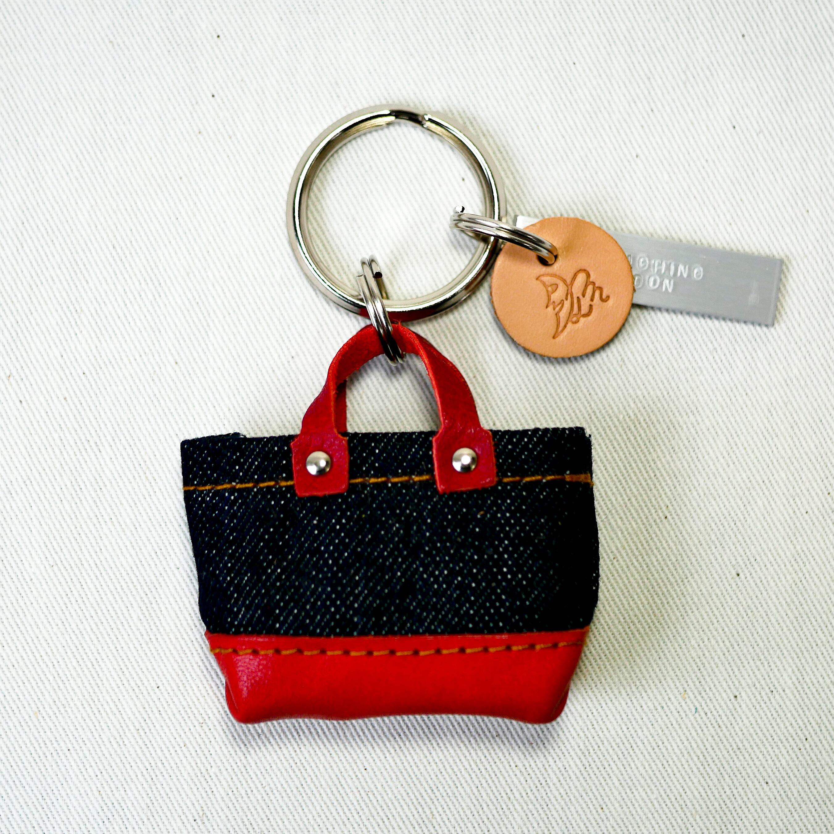ミニバッグキーリングBD ネイビー×茜