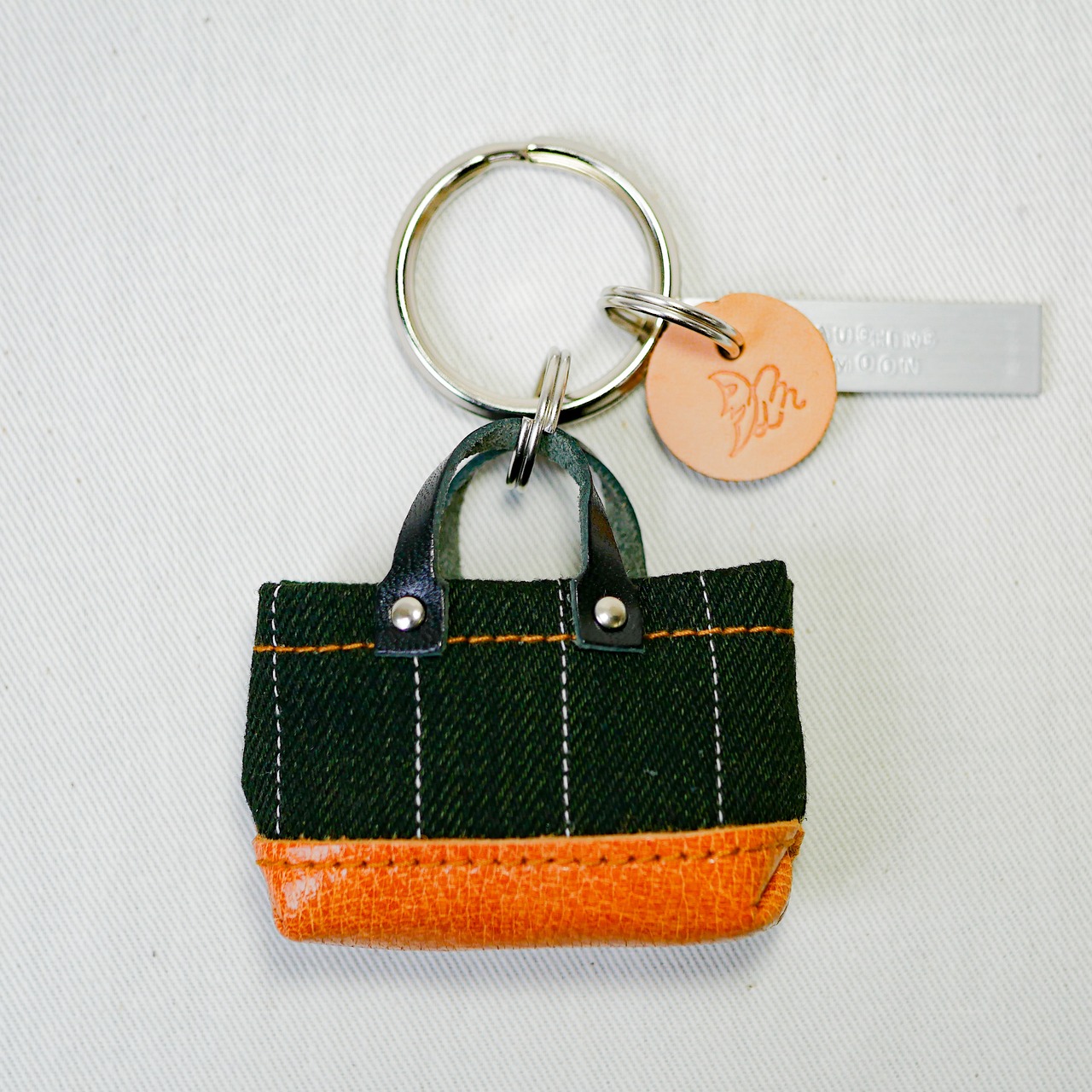 ミニバッグキーリングBD 縦縞グリーン×駱駝